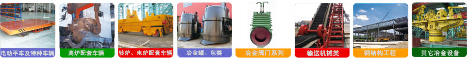 公司產(chǎn)品有ZT系列鐵水罐車(chē)、鋼包車(chē)、渣罐車(chē)、渣盤(pán)車(chē)、電動(dòng)平車(chē)、過(guò)跨車(chē)、鐵水稱(chēng)量車(chē)、液壓傾翻車(chē)、廢鋼料籃車(chē)、中間罐車(chē)、修爐車(chē)、爐底車(chē)、鎳鐵礦熱爐料罐車(chē)、汽運(yùn)鐵水車(chē)以及各種鐵水罐(包)、鋼水包(罐)、渣罐、渣盤(pán)、中間罐、鋼包加蓋、龍門(mén)吊鉤、鋼包傾翻機(jī)、鋼包回轉(zhuǎn)臺(tái)等產(chǎn)品。